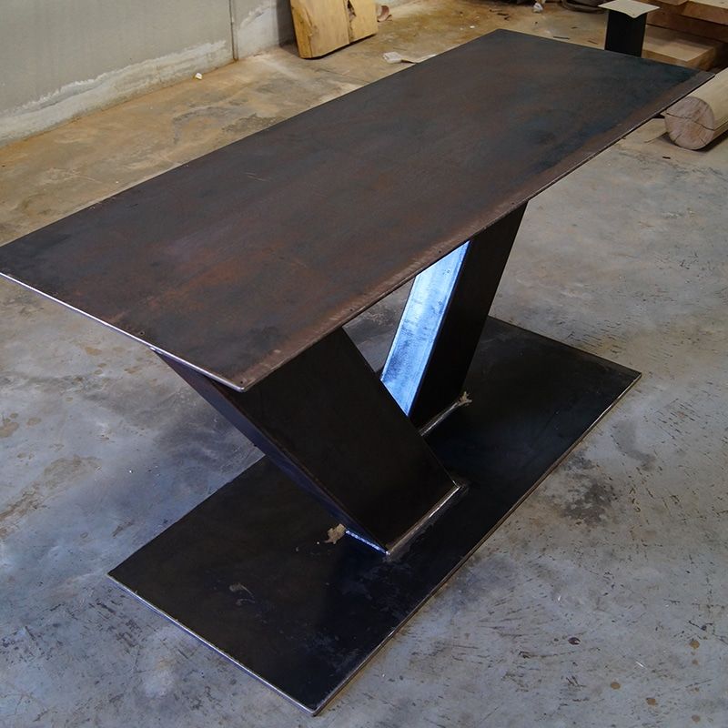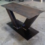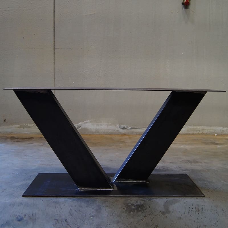 Basamento in ferro Majestic per tavoli in legno massello. Il basamento è realizzato in lamiera di ferro artigianalmente dai fabbri di Falegnameria900.