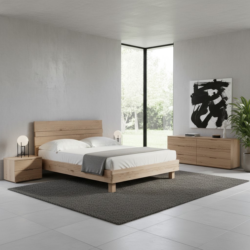 Realizzato interamente in rovere massello europeo, il Kenzo valorizza la materia naturale nella sua espressione più sincera. Le sue linee pulite e proporzionate si inseriscono armoniosamente in camere da letto moderne o più classiche, portando con sé la sensazione calda e rassicurante del legno vivo.