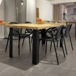 Le gambe e la finitura del legno possono essere personalizzate per adattarsi perfettamente al tuo stile e alla tua casa. Il design rustico e robusto di questo tavolo lo rende perfetto per creare un’atmosfera accogliente e calda nella tua sala da pranzo o cucina.