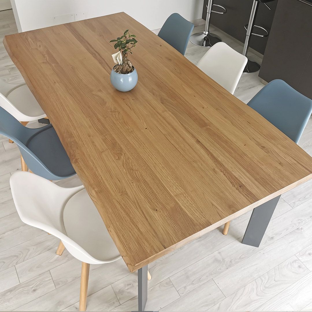 Puoi personalizzare il colore delle gambe e la finitura del legno per adattarli al meglio al tuo stile. Vi suggeriamo di abbinare il tavolo artigianale a sedie dal design minimale ed elegante.