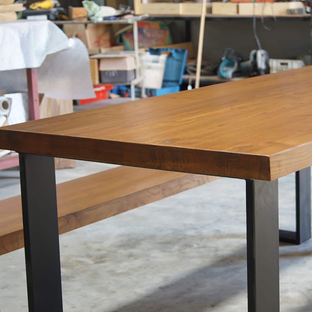 Porta un tocco di eleganza e rusticità alla tua sala da pranzo con il tavolo Impero, realizzato in legno massello con finitura douglas, questo tavolo presenta un design lineare con gambe in ferro personalizzabili in diversi colori.