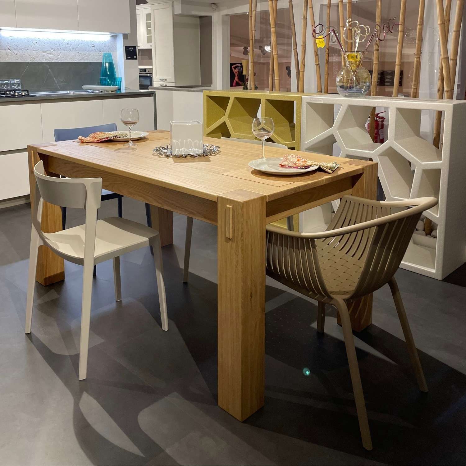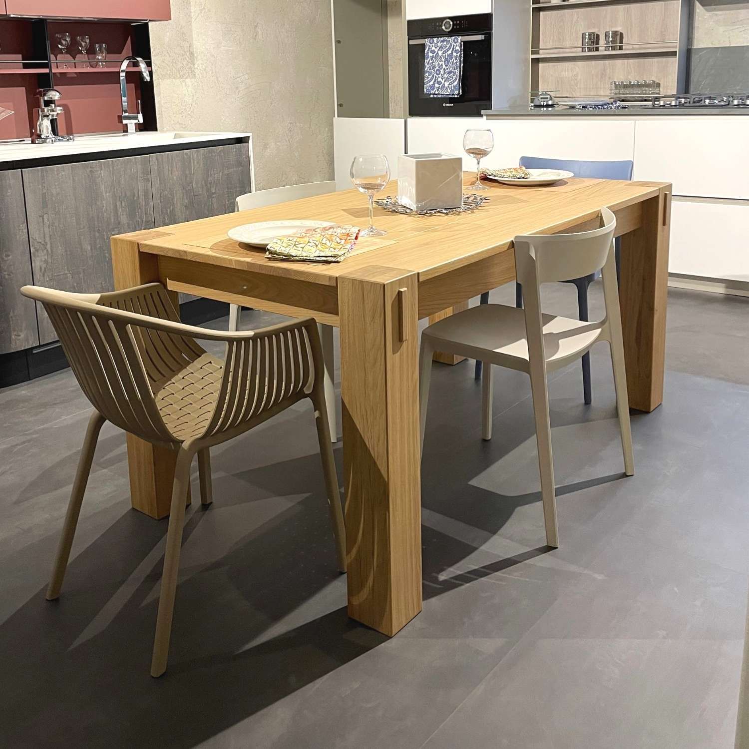 Per completare l’arredamento della sala da pranzo, ti consigliamo di abbinare il tavolo con sedie in coordinato o contrasto, a seconda del look desiderato.