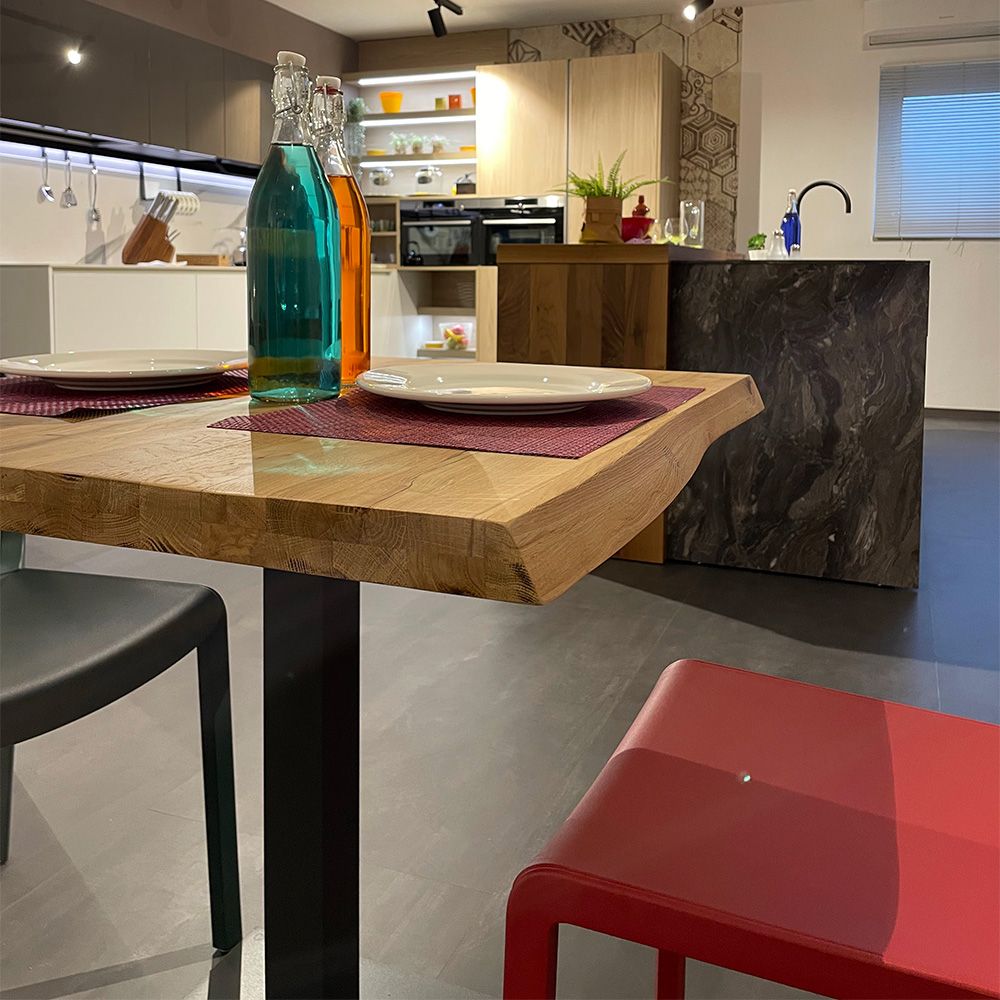 La finitura naturale del tavolo, con il suo bordo irregolare, aggiunge un tocco di autenticità e rusticità all’ambiente circostante. Ogni tavolo viene realizzato con cura, utilizzando solo il legno di migliore qualità, garantendo così una durata e una resistenza eccezionali.