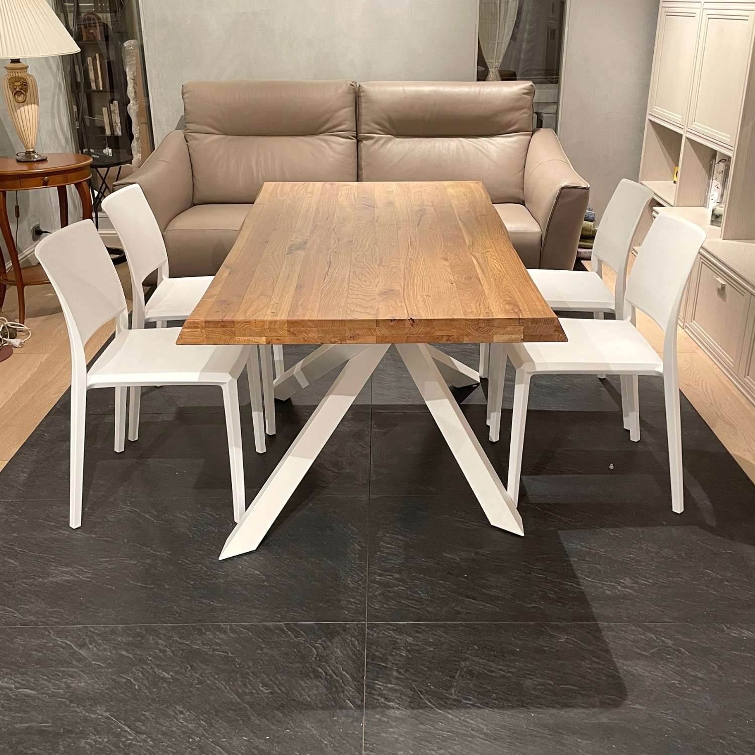 Con la sua finitura grano e le gambe Shang personalizzabili, potrai creare un pezzo unico e in perfetta sintonia con il tuo stile. Abbinato a sedie in coordinato, creerai un ambiente elegante e accogliente per i tuoi pasti quotidiani o le cene speciali.
