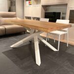 Tavolo con piano in massello di rovere nodato e gamba shang