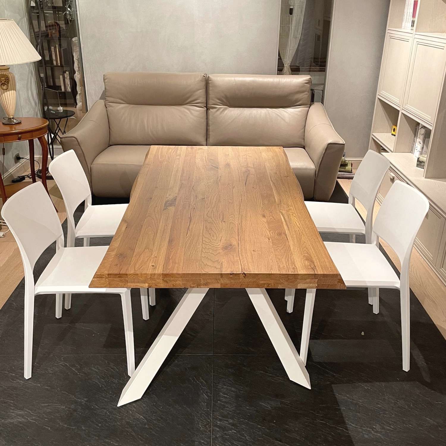 Il nostro tavolo in massello di rovere nodato è il pezzo perfetto per la tua sala da pranzo.