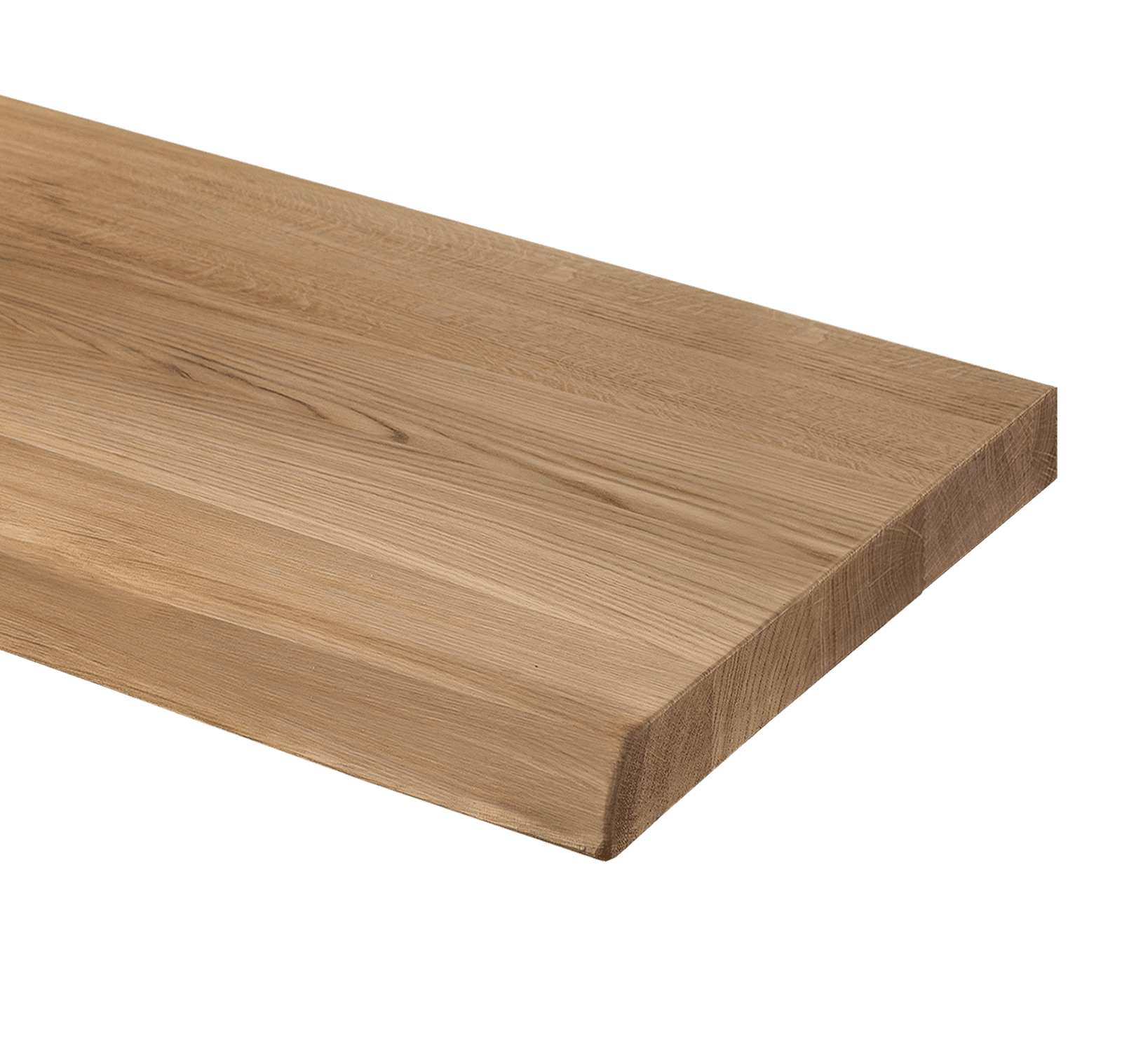 La mensola Altacorte in rovere massello europeo è realizzata su misura, con bordi naturali o dritti.