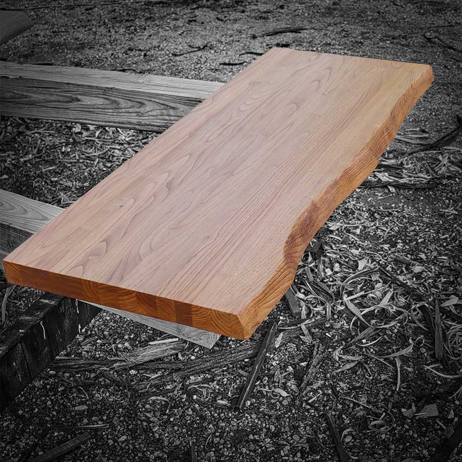 La mensola è realizzata in rovere europeo massello con spessori da 40 a 45 mm, disponibile in due varianti: con bordi irregolari che conservano il profilo naturale del tronco, oppure con quattro lati dritti per un’estetica più contemporanea.